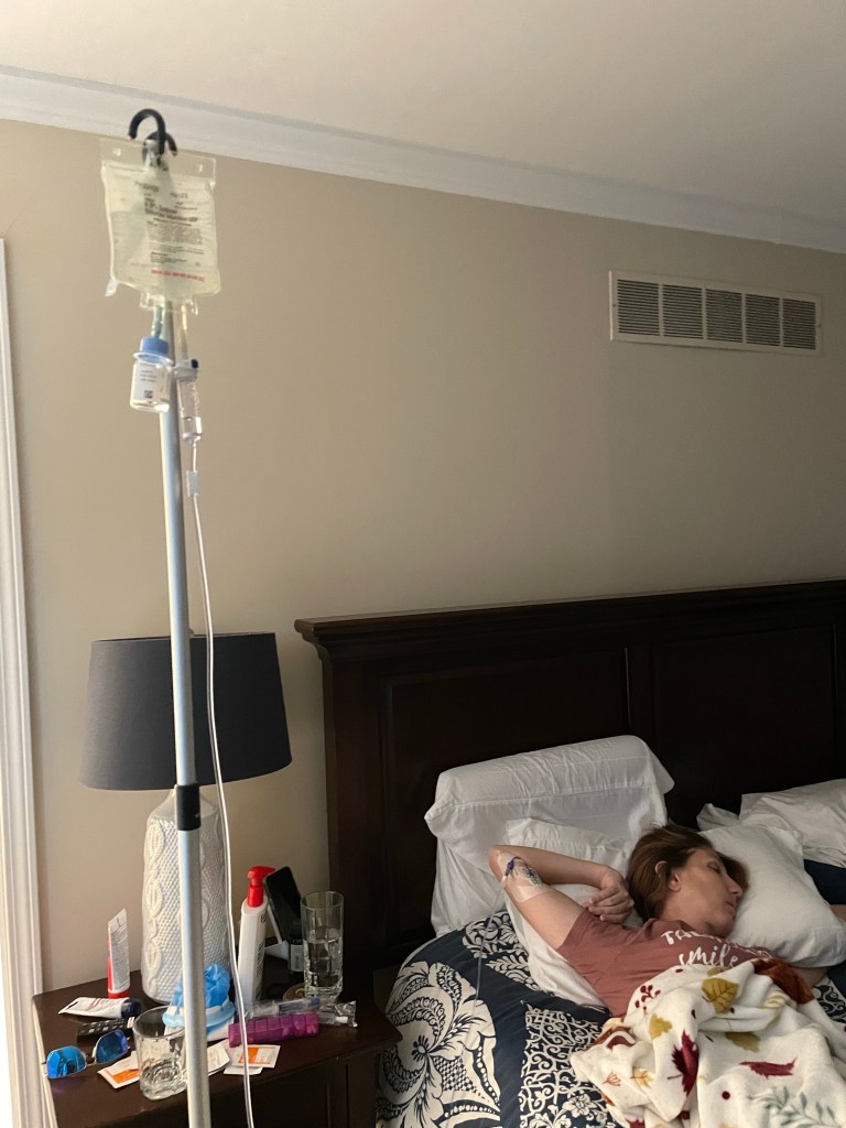 My day typically begins with Ramon “gently” waking me up for my first infusion of IV antibiotics. This usually happens after about two hours after I have finally gotten comfortable and been able to finally fall asleep, which is otherwise known as 6AM. If I’m lucky, I can roll over and go back to sleep during the 2 hour infusion.