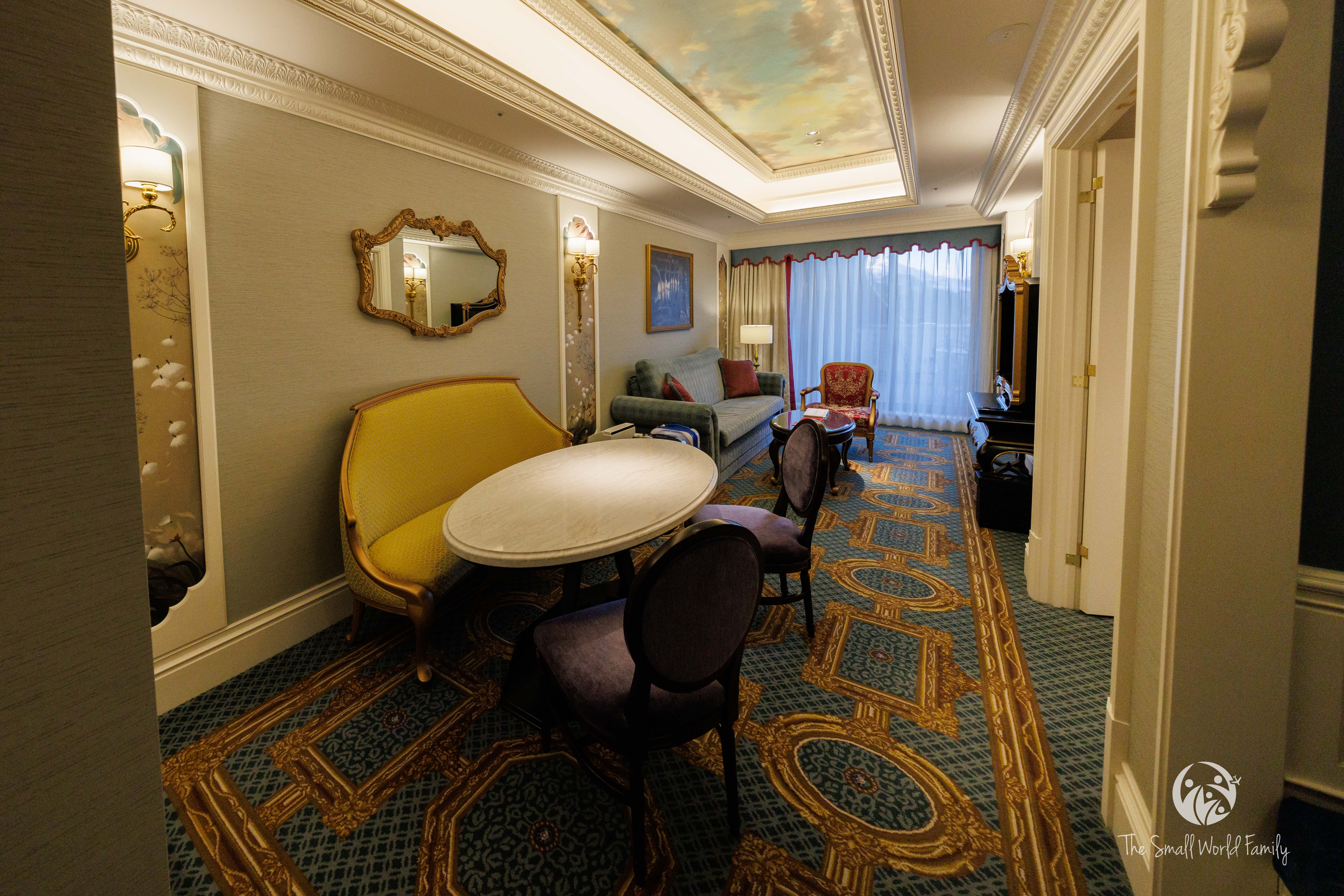 It feels more like a walk in Versaille or other European palace than a Disney Hotel to be honest. Conveniently enough our room is very close to the hallway. It was the 2nd room after we passed the hallway and elevator. We enter the room and it is absolutely gorgeous.