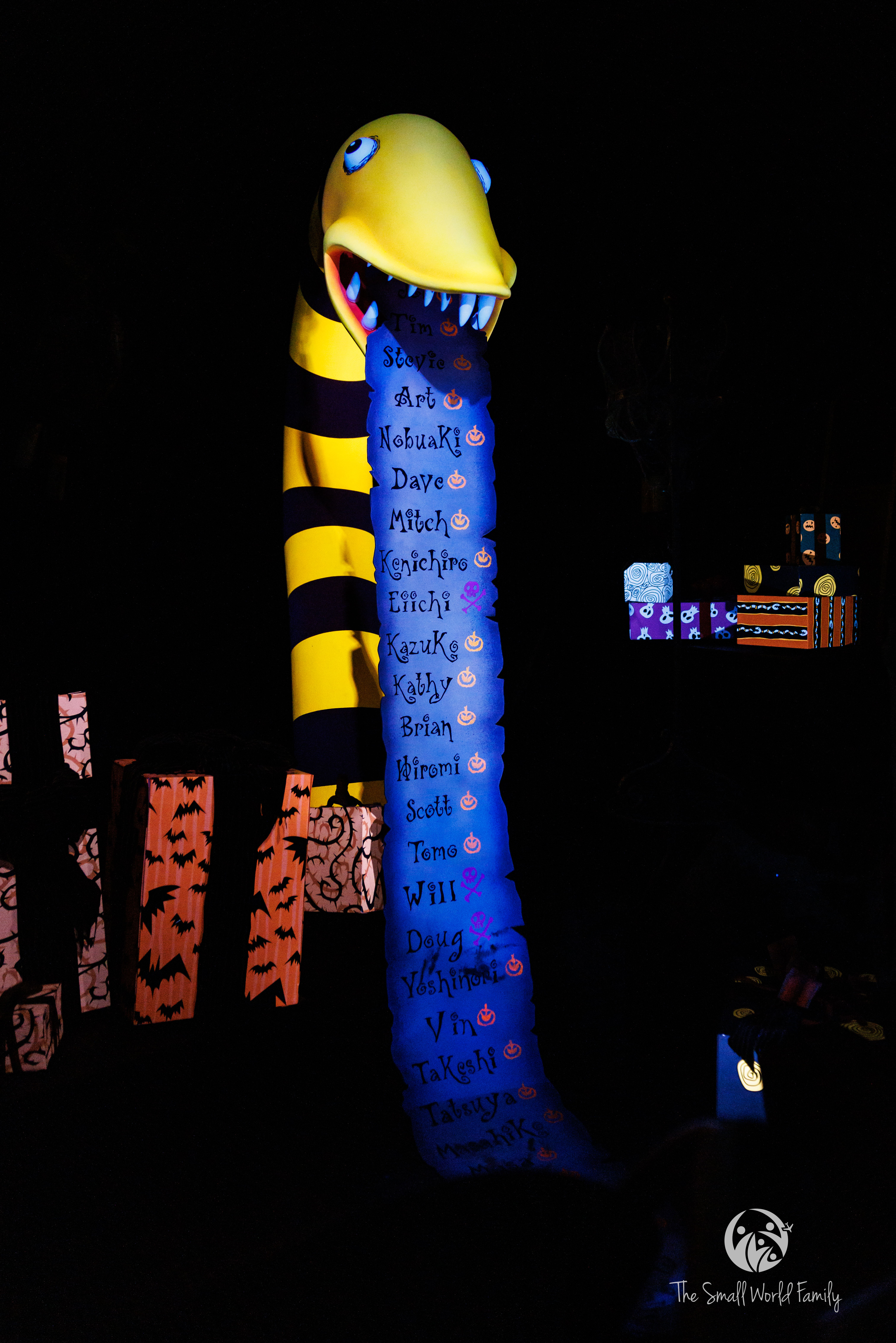 We didn’t know what to expect from this ride, but I must say we were very impressed. This was a trackless dark ride, and you board a honey pot as a ride vehicle.
