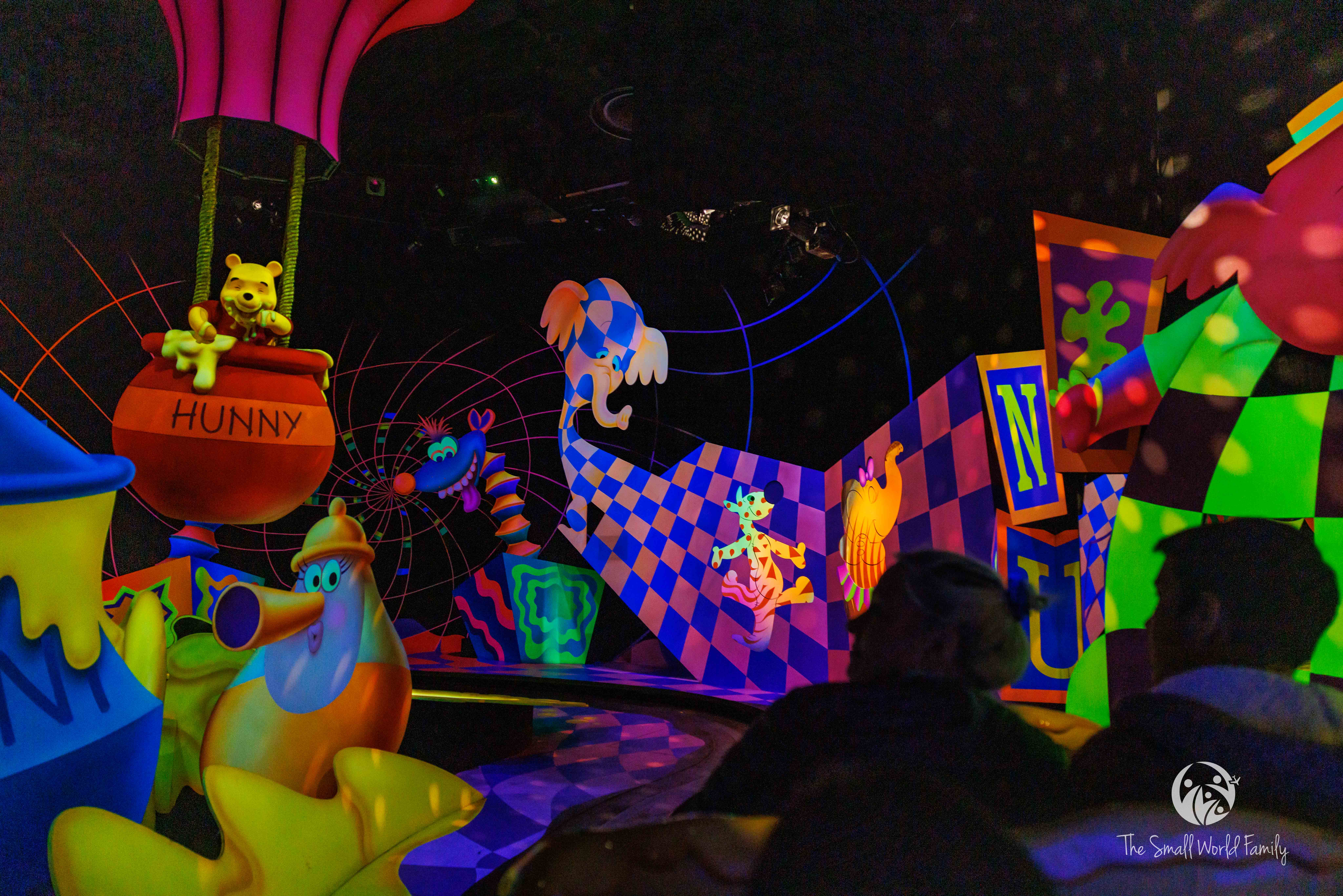 We start to head out but right near the exit to Tiana’s is The Many Adventures of Winnie the Pooh and it is a walk on so we decided to do just one more ride.