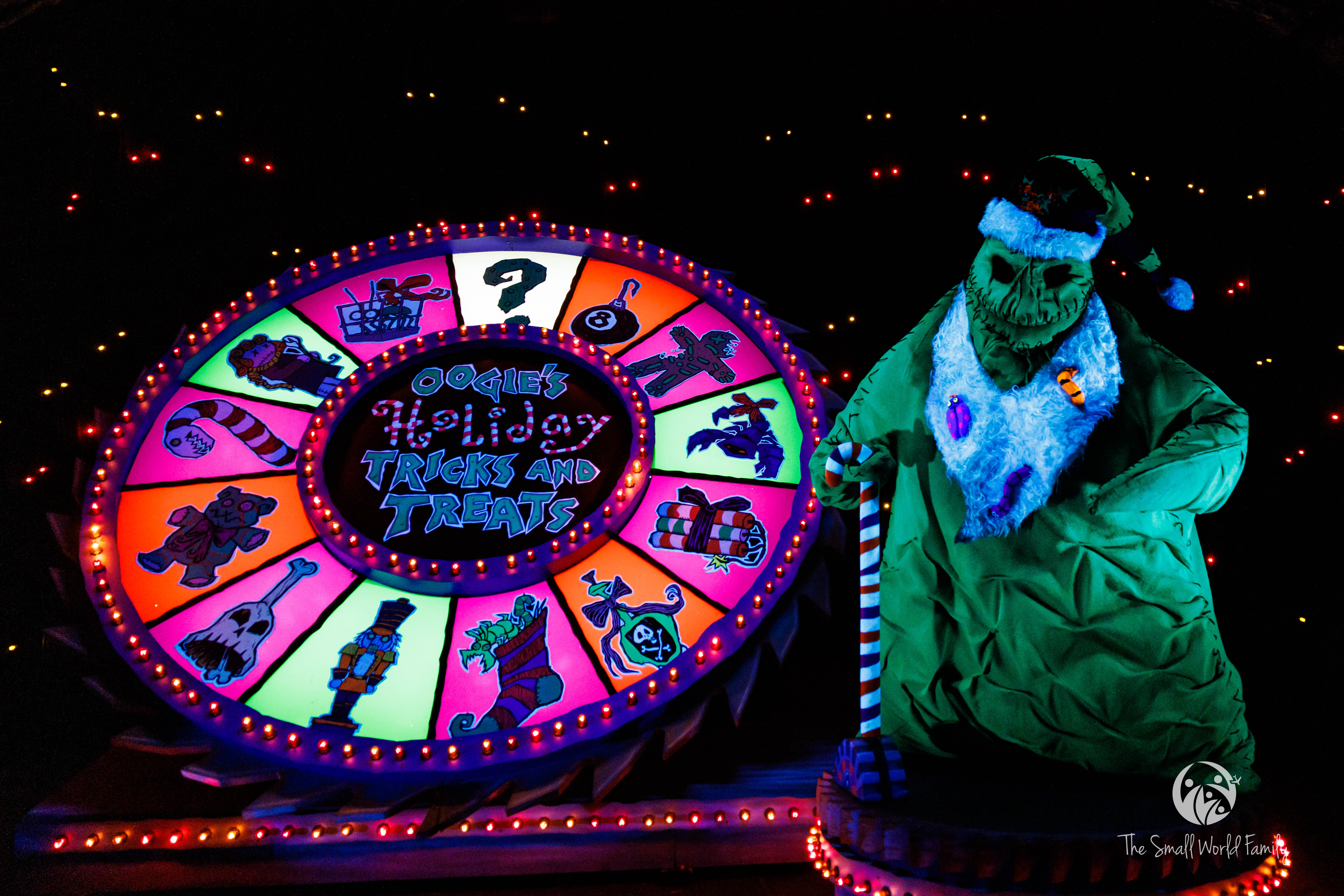 The Haunted Mansion has the Holiday Nightmare overlay here as well, which is very similar to the overlay in Tokyo. The main difference is the version here has Oogie Boogie at the end and in Tokyo there was no Oogie Boogie.