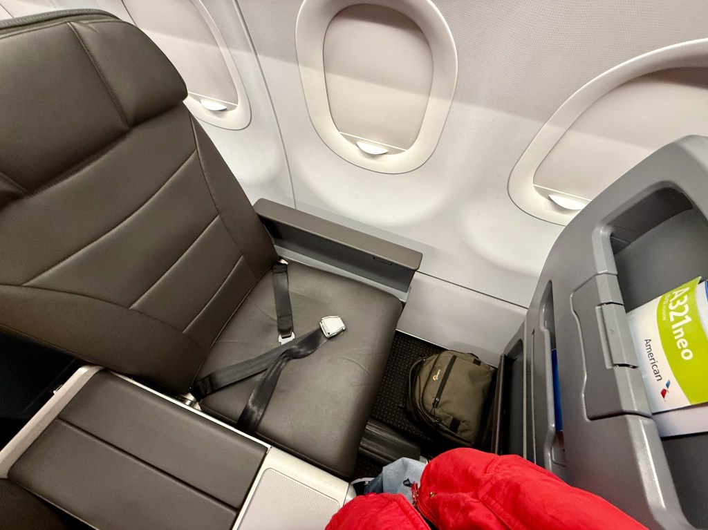 We are flying American Airlines today in Domestic First Class and so for the first time since our Delta flight to Miami we were back on a carrier that we have been on before. The flight boards on time with no further delays and we have seats 2A, 2C ,2D.
