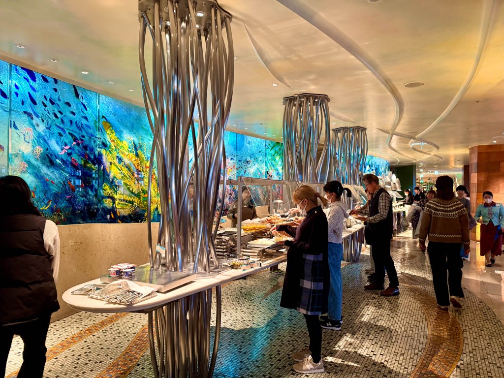 The internet is a little faster now and I start to watch it in the room. Midway through the 3rd quarter we head to our breakfast reservation at the buffet downstairs, Oceano. This is part of our Vacation Package and the reservation time was selected when we booked it 5 months ago well before the football season had even started. I then start streaming the game on my phone and listen to the broadcast via AirPods. The streaming is pretty inconsistent and thatโs putting it nicely so I have my brother text me updates as to whatโs happening.
